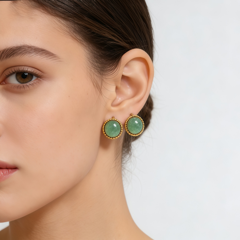 Increase quantity for GREEN DONGLING STUD EAR/GLD
