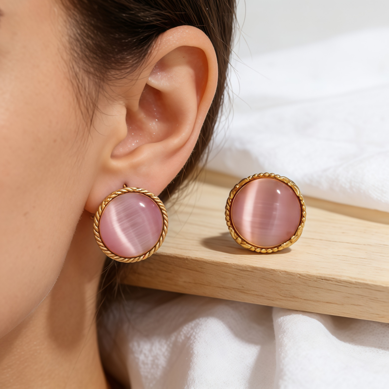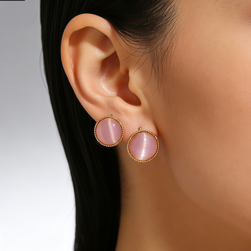 Decrease quantity for PINK CAT'S EYE STUD EAR/GLD